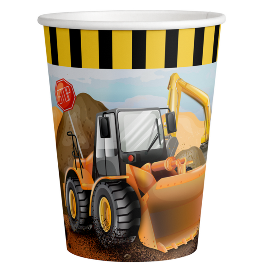 Een pakje met 8 bekertjes bedrukt met een sjofel. Leuk voor kinderfeestjes in het thema bouwvakkers. Inhoud: 236ml.