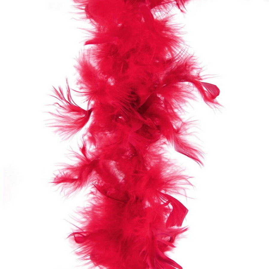 Een mooie, rode boa van echte veren. Lengte ongeveer 190 cm. Gewicht 37 gram. LET OP! Boa's worden met de hand gemaakt. Schud de boa's eerst goed uit voordat u deze gebruikt, want er zitten altijd lossen veren in de boa. Dat is standaard bij elke boa.