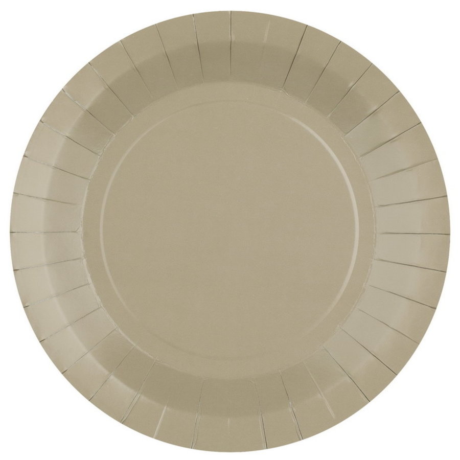 Een pakje met 10 papieren biologisch afbreekbare bordjes. Kleur: cappuccino. Perfect voor themafeesten op kleur!