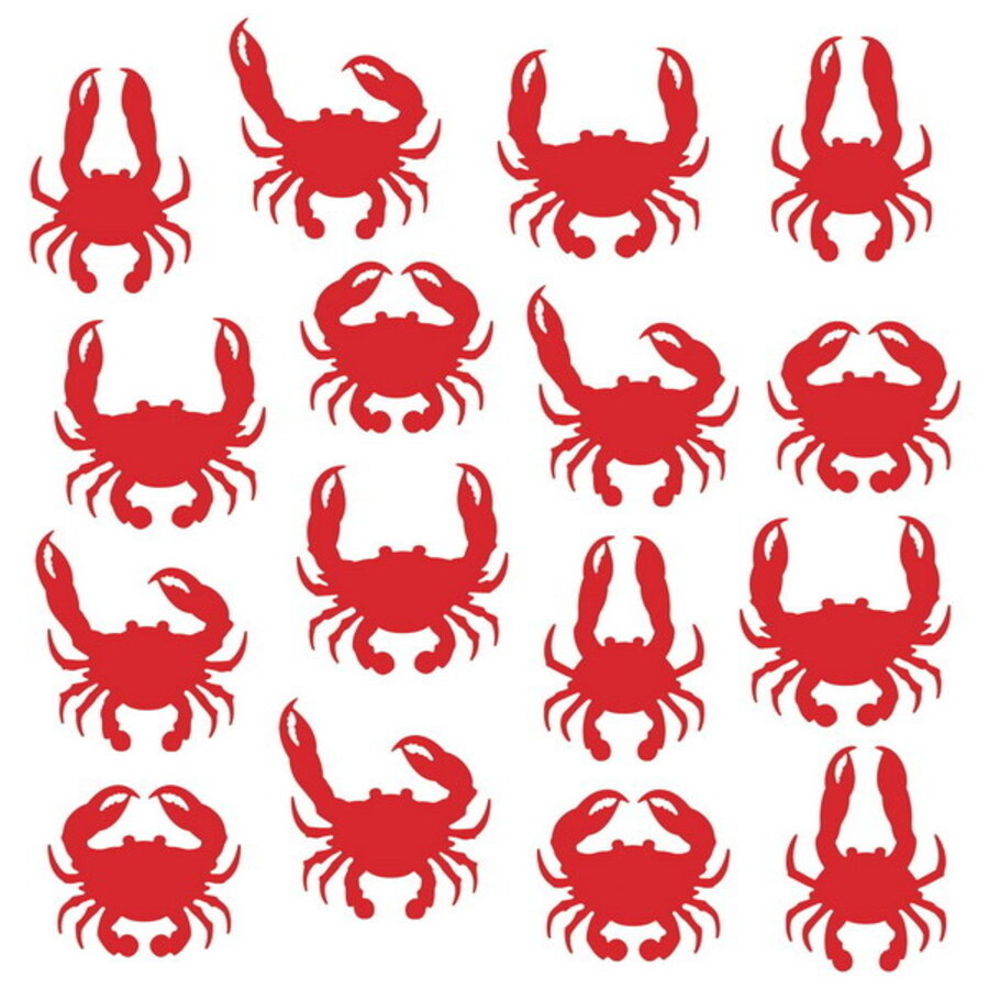 Een pak met 16 kartonnen decoraties van krabben. Super leuk voor een themafeest. Of om bijvoorbeeld te gebruiken tijdens een zomerse BBQ. Super origineel! Afmeting: 15cm - 23cm. Dubbelzijdig bedrukt.