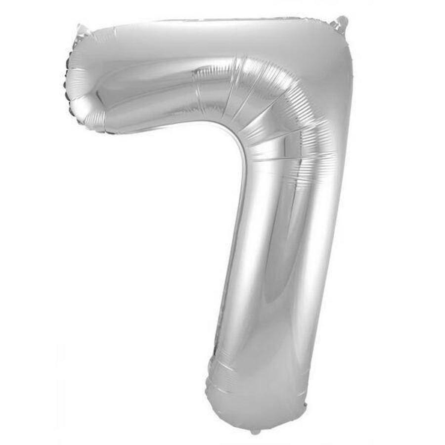 Folieballon 7 jaar ZILVER voor lucht of helium MEGA