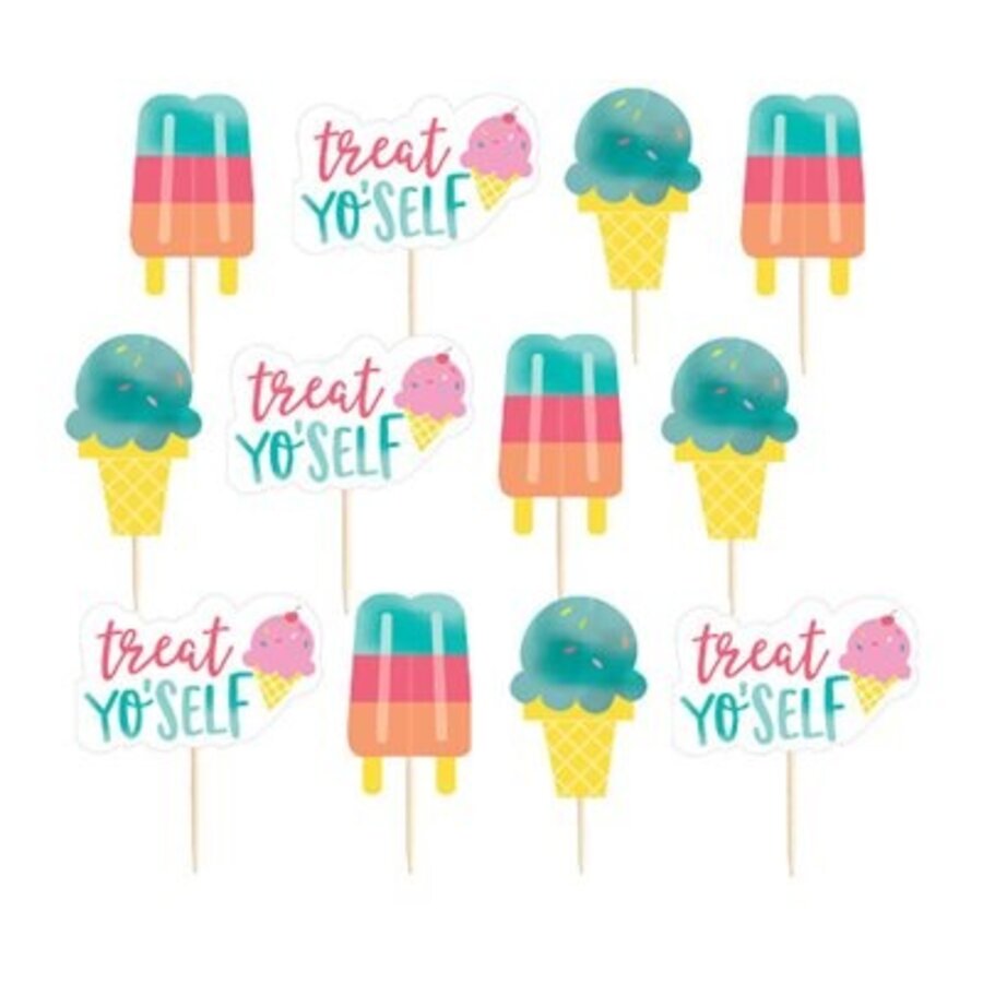 Een pakje met 24 prikkers in de vorm van ijsjes. Hoogte: 8.8cm.