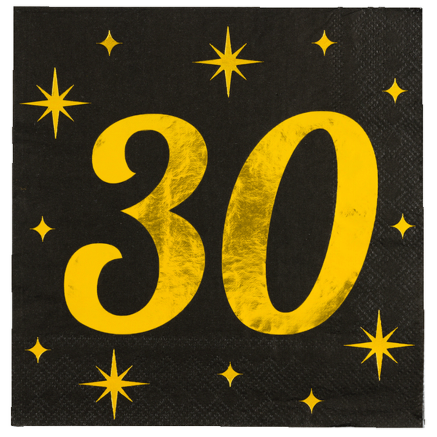 Vier het monumentale jubileum van 30 jaar met onze collectie servetten, een essentieel onderdeel van uw 30 jaar versiering en 30 jaar feestartikelen. Onze servetten zijn niet alleen praktisch, maar voegen ook een vleugje elegantie en feestelijkheid toe aan elke gelegenheid. Verkrijgbaar in een verfijnde selectie van de kleuren goud-zwart, passen deze servetten moeiteloos bij elk thema of decor, waardoor ze de perfecte keuze zijn voor het vieren van deze bijzondere mijlpaal.