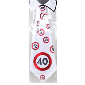 Een witte stropdas bedrukt met verkeersborden 40.