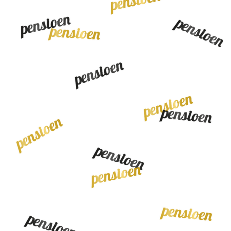 Een pakje met luxe tafelconfetti in de tekst pensioen. Leuk om op tafel te decoreren voor een pensioen party. Kleur: goud en zwart. Inhoud: 14 gram.