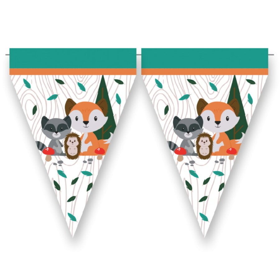Een papieren vlaggenlijn bedrukt met bosdieren. Lengte: 3 meter.